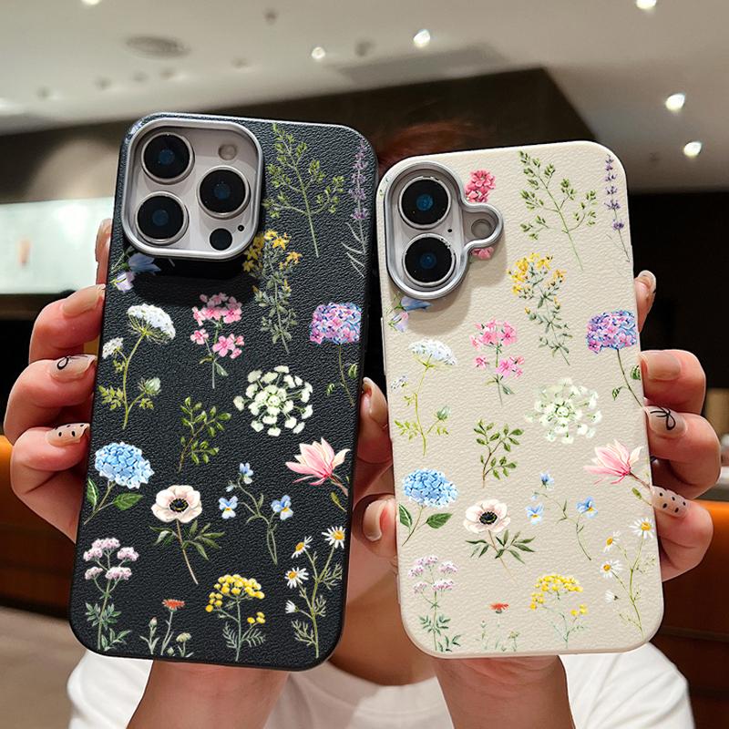 Ударопрочный мягкий чехол из ТПУ с цветочным принтом для iPhone 16 Pro 15 14 Plus 13 12 Pro Max 11 с текстурой кожи, однотонный тонкий чехол — купить товар онлайн с бесплатной доставкой до всему миру!