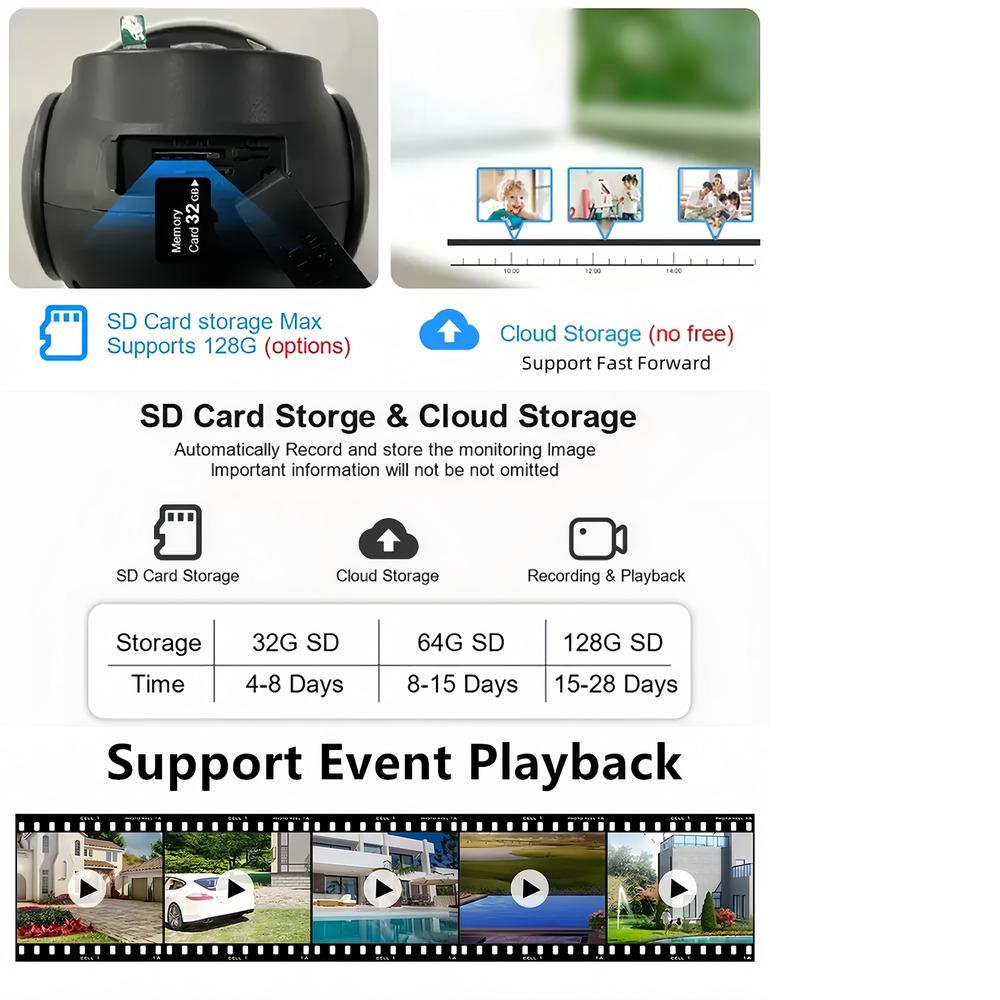 Поддержка карт памяти TF объемом до 128 ГБ и облачного хранилища, более стабильная защита данных.