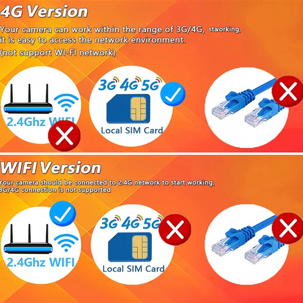 WiFi веб-камера версия сеть: Только 2.4G WiFi, (SIM-карта 4G или WiFi 5G не поддерживаются)Заметки: