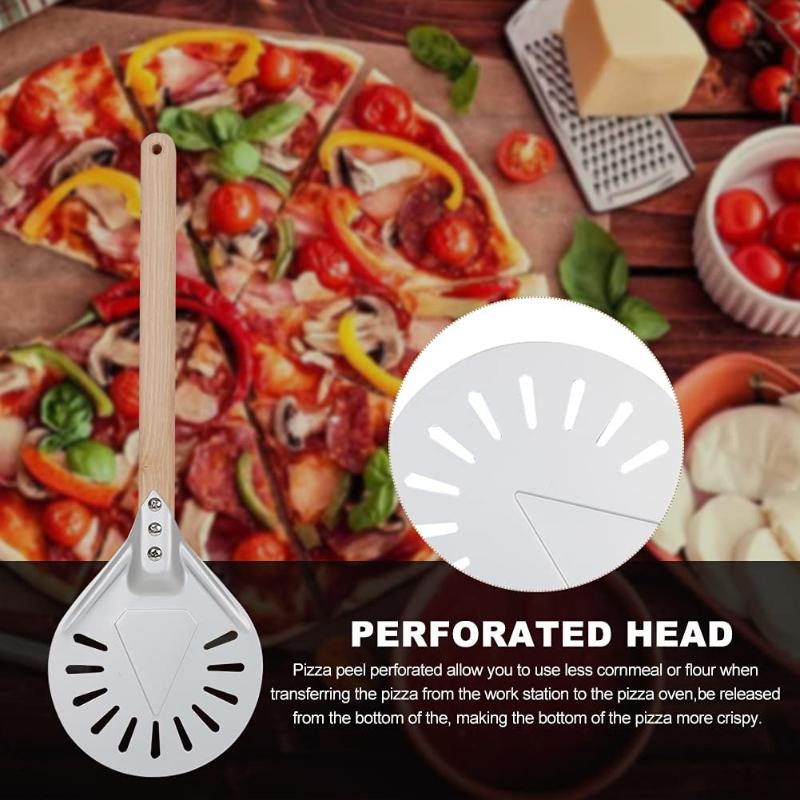 7/8/9 дюймов алюминиевая перфорированная лопатка для пиццы металлическая круглая нескользящая деревянная ручка лопатка для пиццы инструменты для выпечки