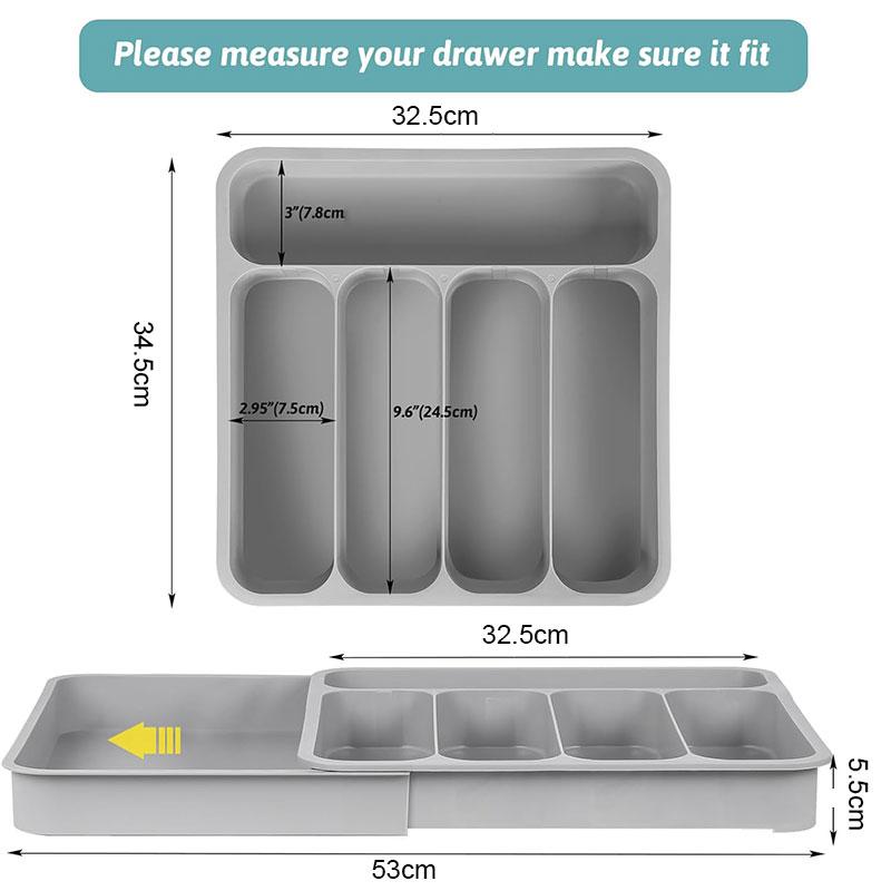 Органайзер для выдвижного ящика для столовых приборов, регулируемый лоток для кухонных принадлежностей, 6 отделений, разделитель для хранения столовых приборов, организация кухни