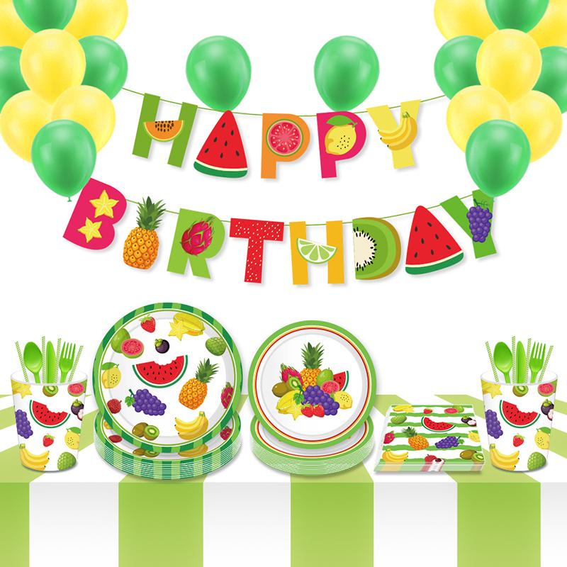 Гавайи Фруктовый Узор Тематическая Вечеринка Одноразовая Посуда Бумажные Тарелки Чашки Салфетки Дети День Рождения Украшения Свадебные Принадлежности Для Вечеринок