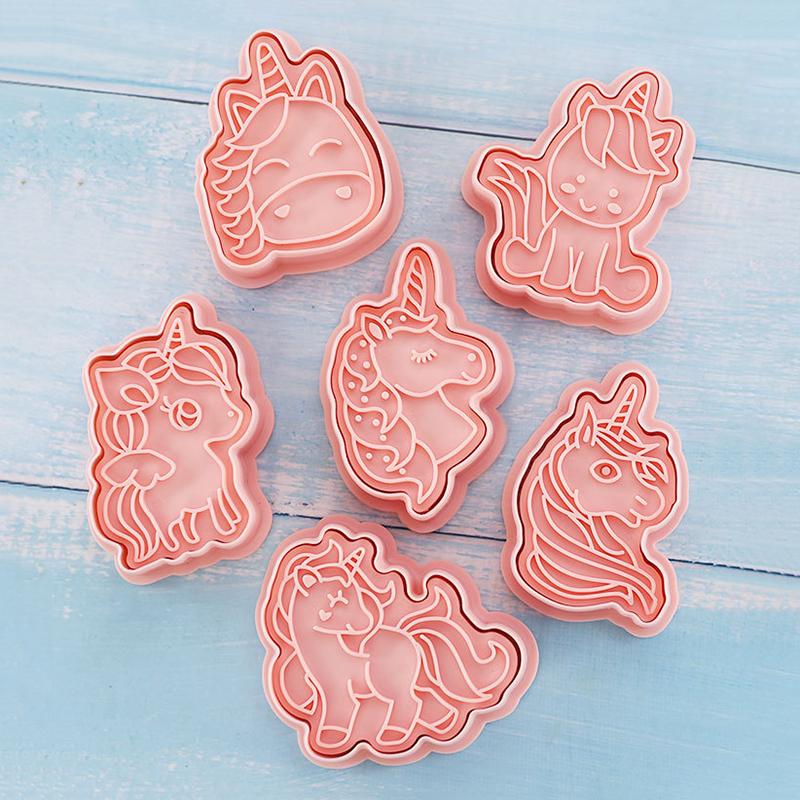 6 шт./набор Милый резак для печенья в виде единорога Мультяшная сжимаемая форма для печенья Кухонные принадлежности для выпечки Кондитерские товары для вечеринок