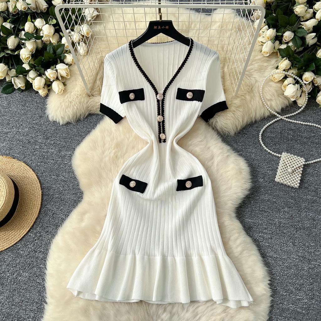 Летние женские элегантные мини-платья с V-образным вырезом и коротким рукавом