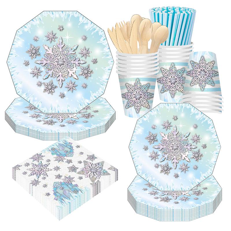 Снежинка тематика день рождения бумажные тарелки чашки баннер Холодное сердце Снежная королева мультфильм свадьба детский душ украшения принадлежности