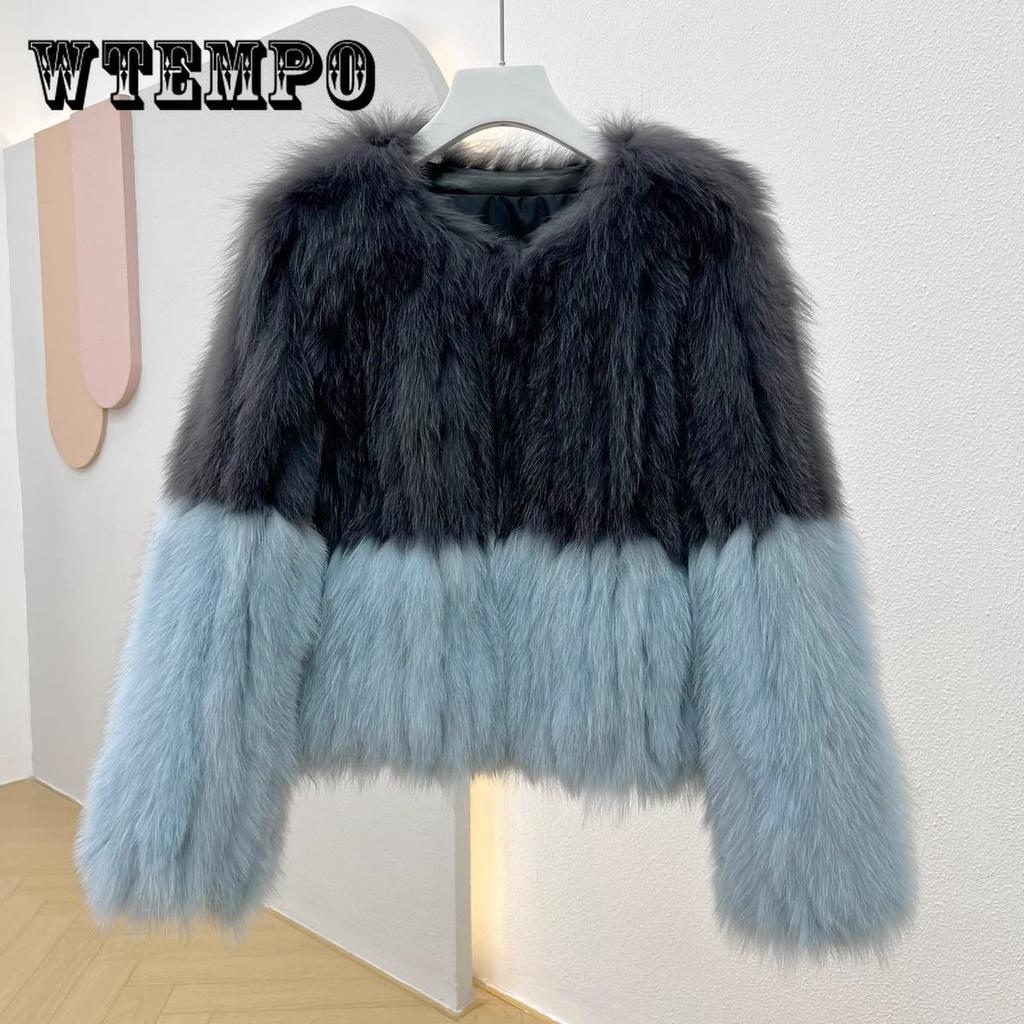 Зимнее меховое пальто женское сшитое контрастного цвета модный топ для верхней одежды