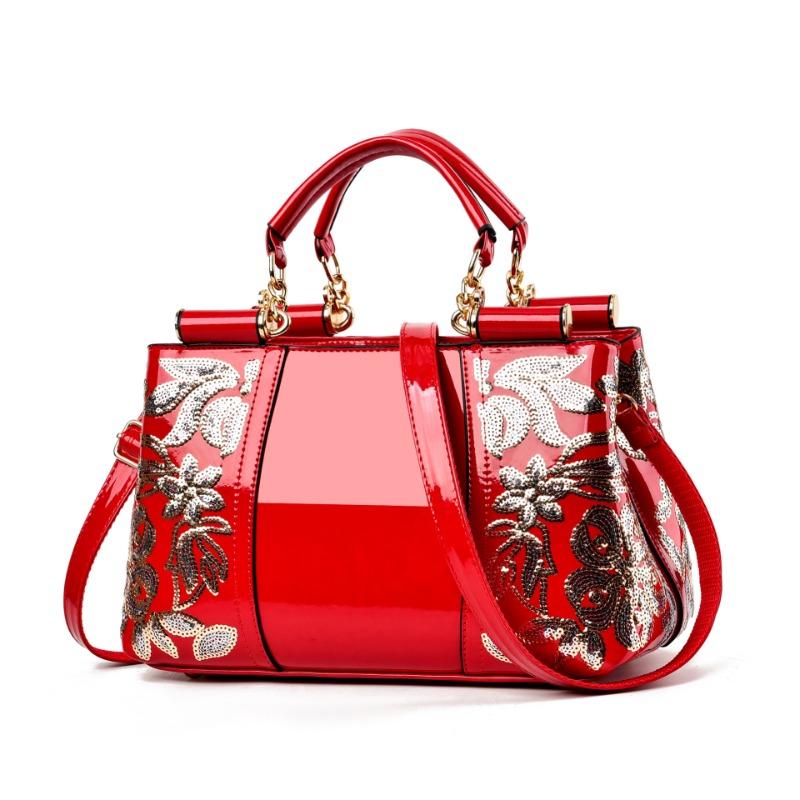 Европейская американская лакированная кожа женская сумка дизайнерская вышивка женская сумка яркая кожа женская сумка через плечо