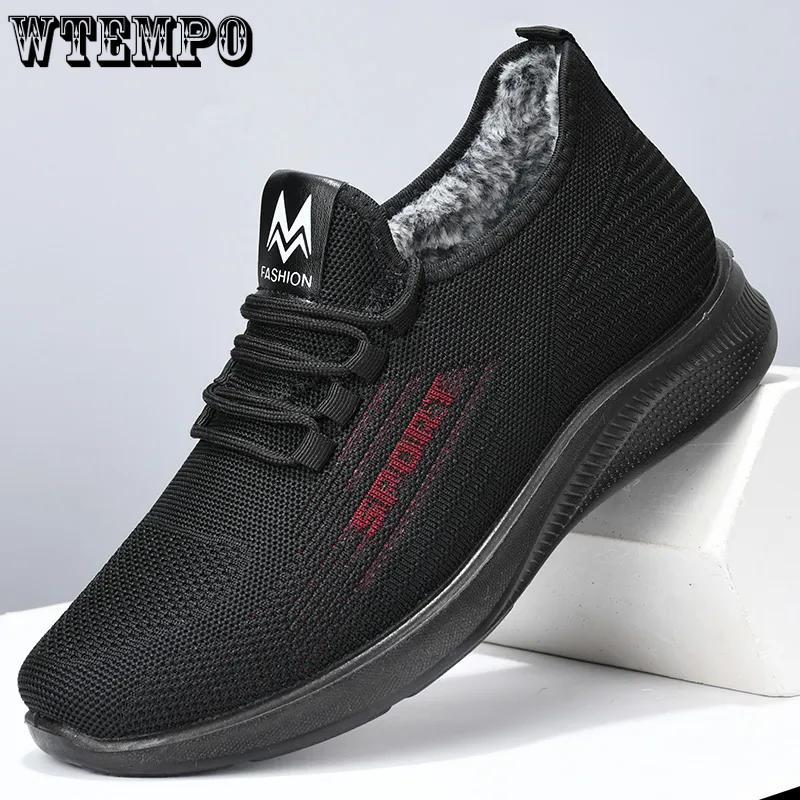 WTEMPO Мужские теплые однотонные туфли на плоской подошве, нескользящие повседневные туфли, зимние мужские туфли большого размера из хлопка, мягкие плюшевые кроссовки на подошве