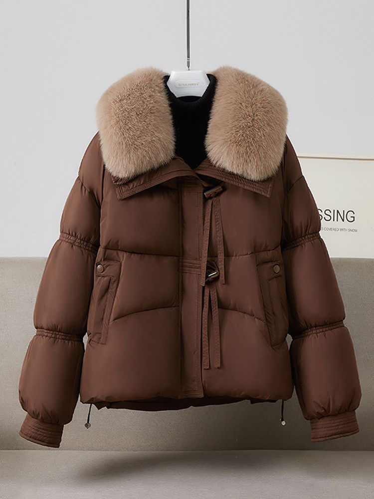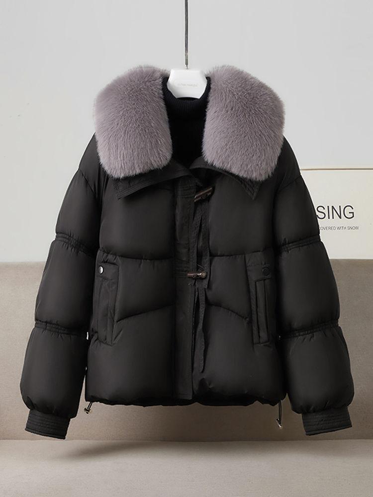 Модная хлопковая куртка с большим меховым воротником, зимнее женское пальто, короткая хлопковая куртка