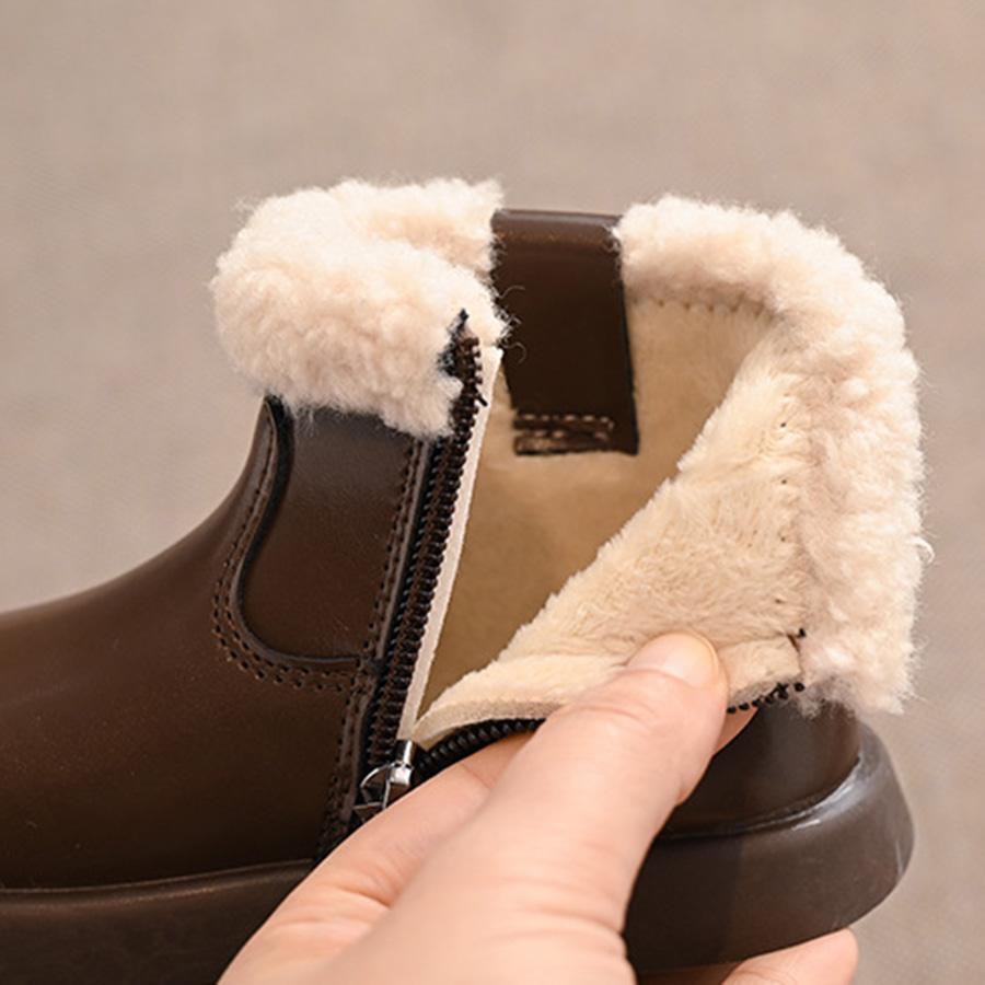 Ботинки из хлопка для девочек, новые зимние кожаные ботинки с меховым воротом, мягкие ботинки для детей среднего и большого возраста, детские ботинки из хлопка