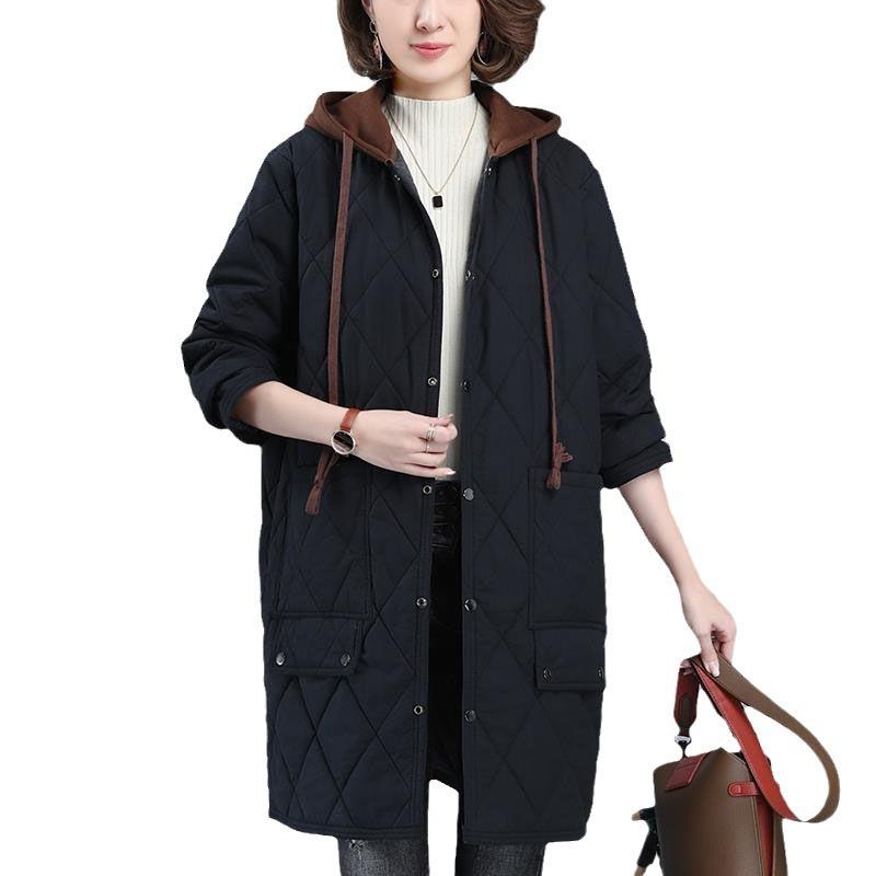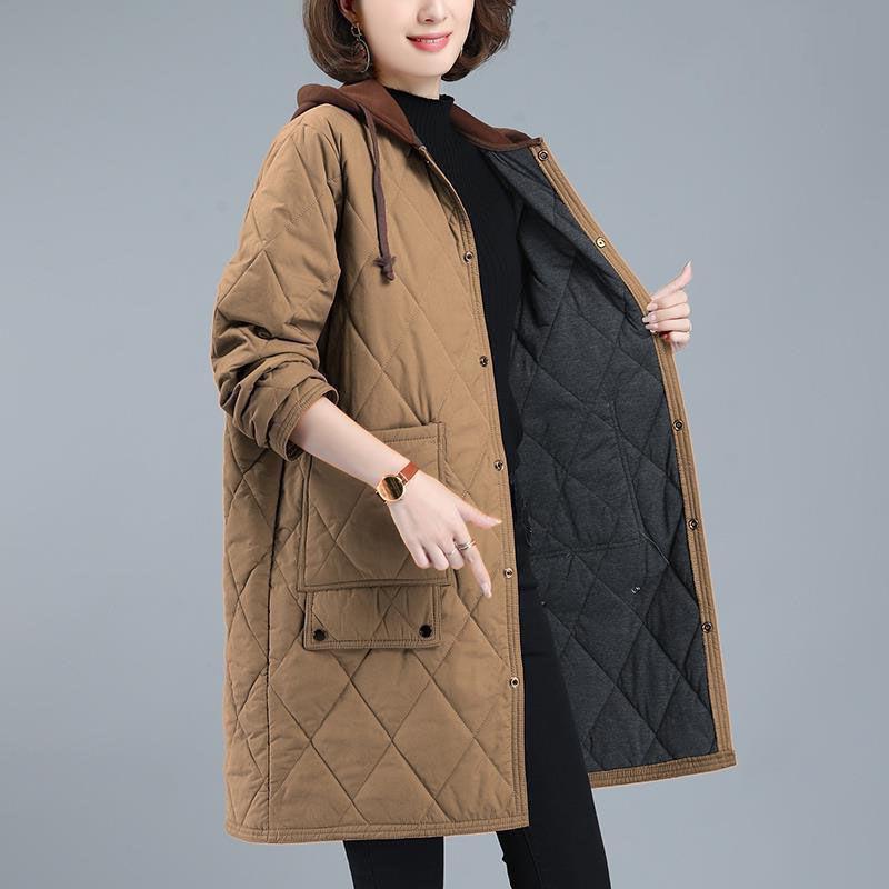 Куртка с хлопковой подкладкой для женщин зимой, свободная, большого размера, повседневная, средней длины, с капюшоном, стеганая, теплая куртка с хлопковой подкладкой
