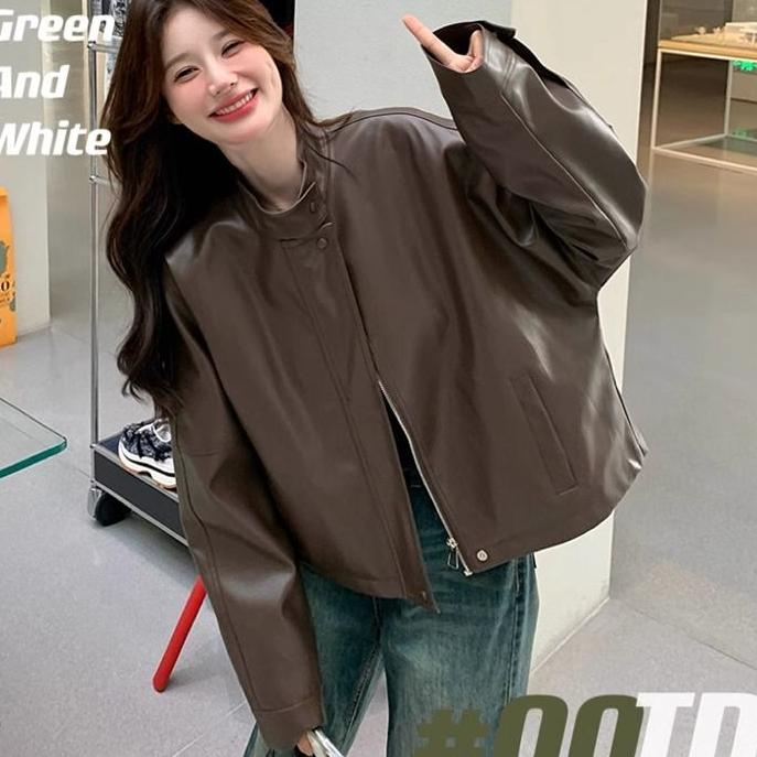 Новая модная женская кожаная куртка с круглым вырезом на молнии в стиле ретро, повседневная, для поездок на работу, роскошная, мотоциклетная, короткая кожаная куртка