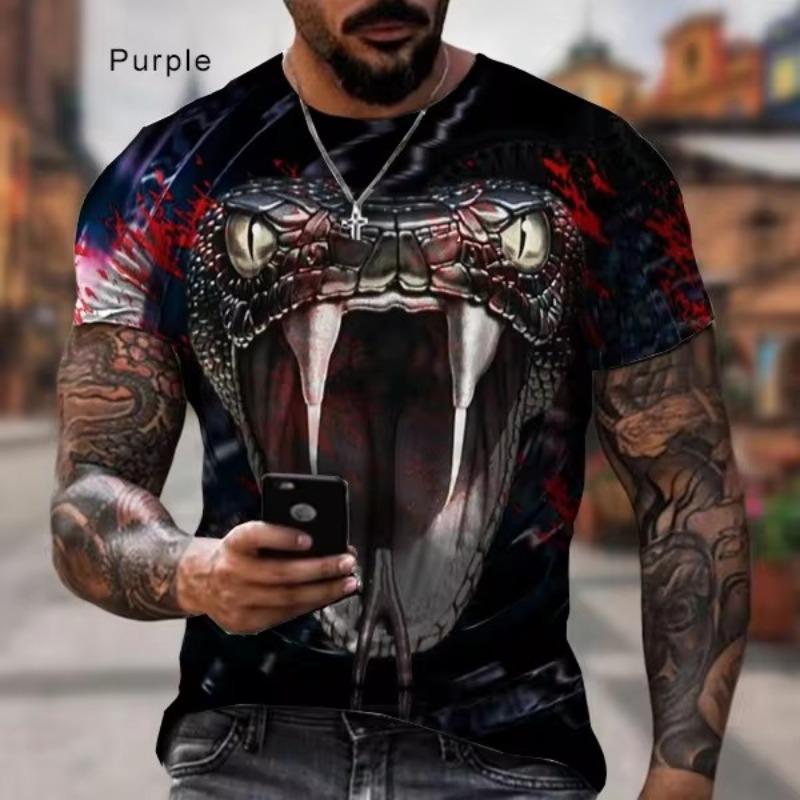 Футболка с 3D-принтом и изображением ужасного животного-змеи, мужская мода, футболки с рисунком кобры, свободные уличные женские топы с круглым вырезом, свободные футболки Harajuku