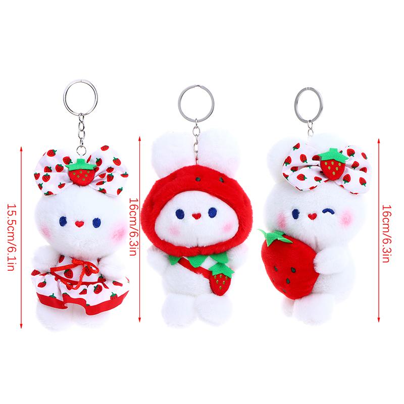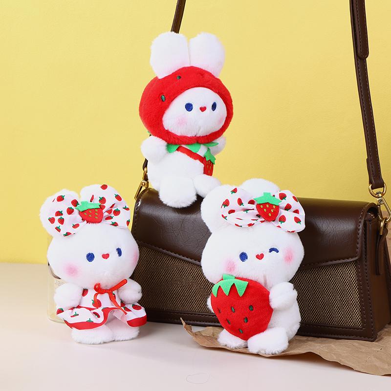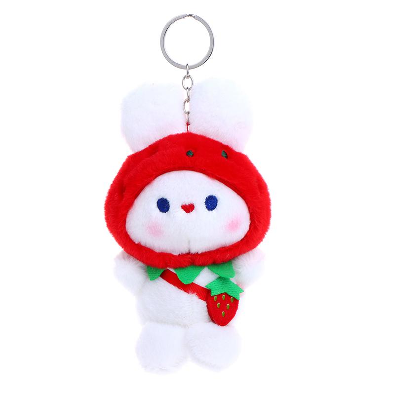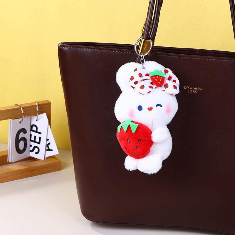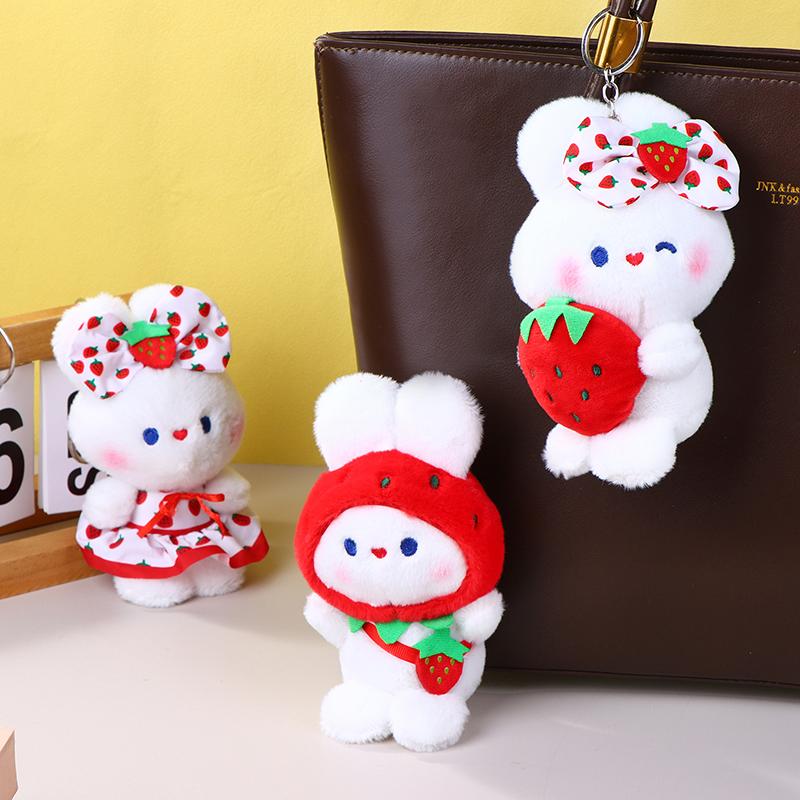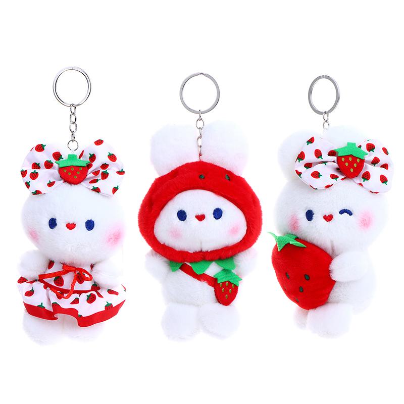 Милая плюшевая игрушка «Клубничный кролик», мультяшный кролик, мягкая кукла, брелок для ключей, автомобильный брелок, сумка, декор для рюкзака, подарок для ребенка