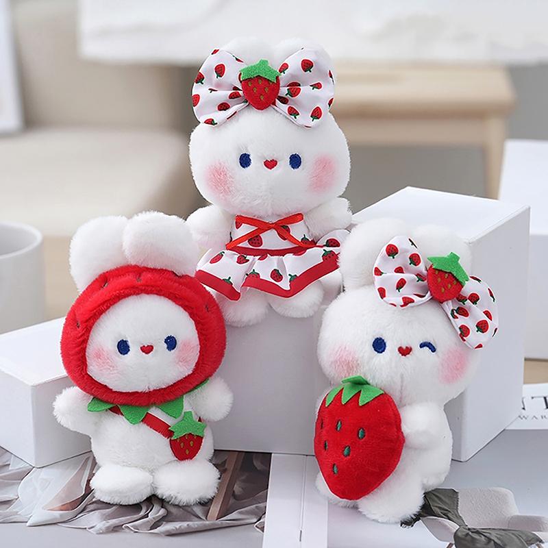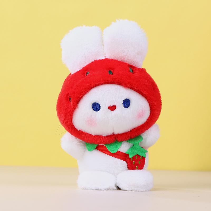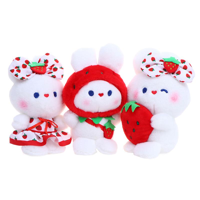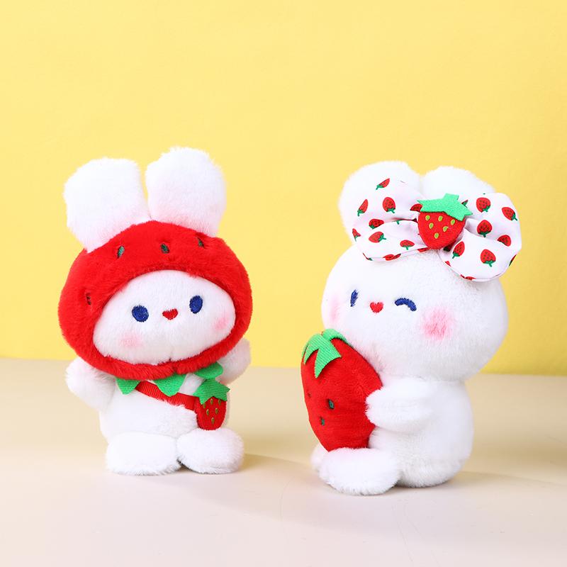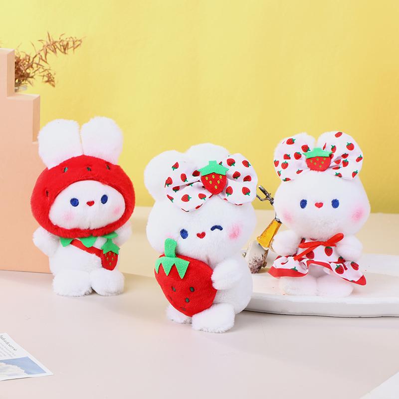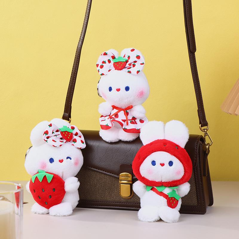Милая плюшевая игрушка «Клубничный кролик», мультяшный кролик, мягкая кукла, брелок для ключей, автомобильный брелок, сумка, декор для рюкзака, подарок для ребенка