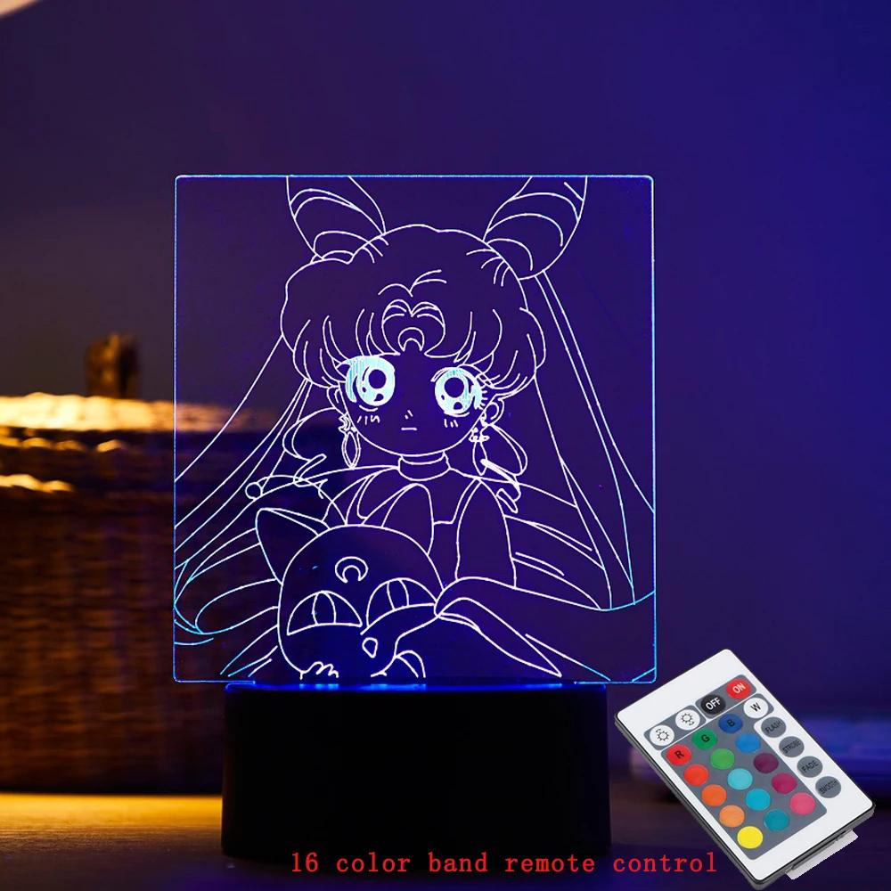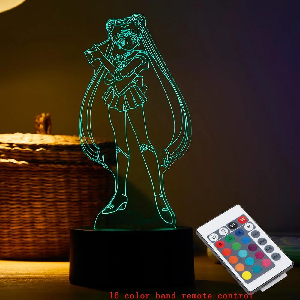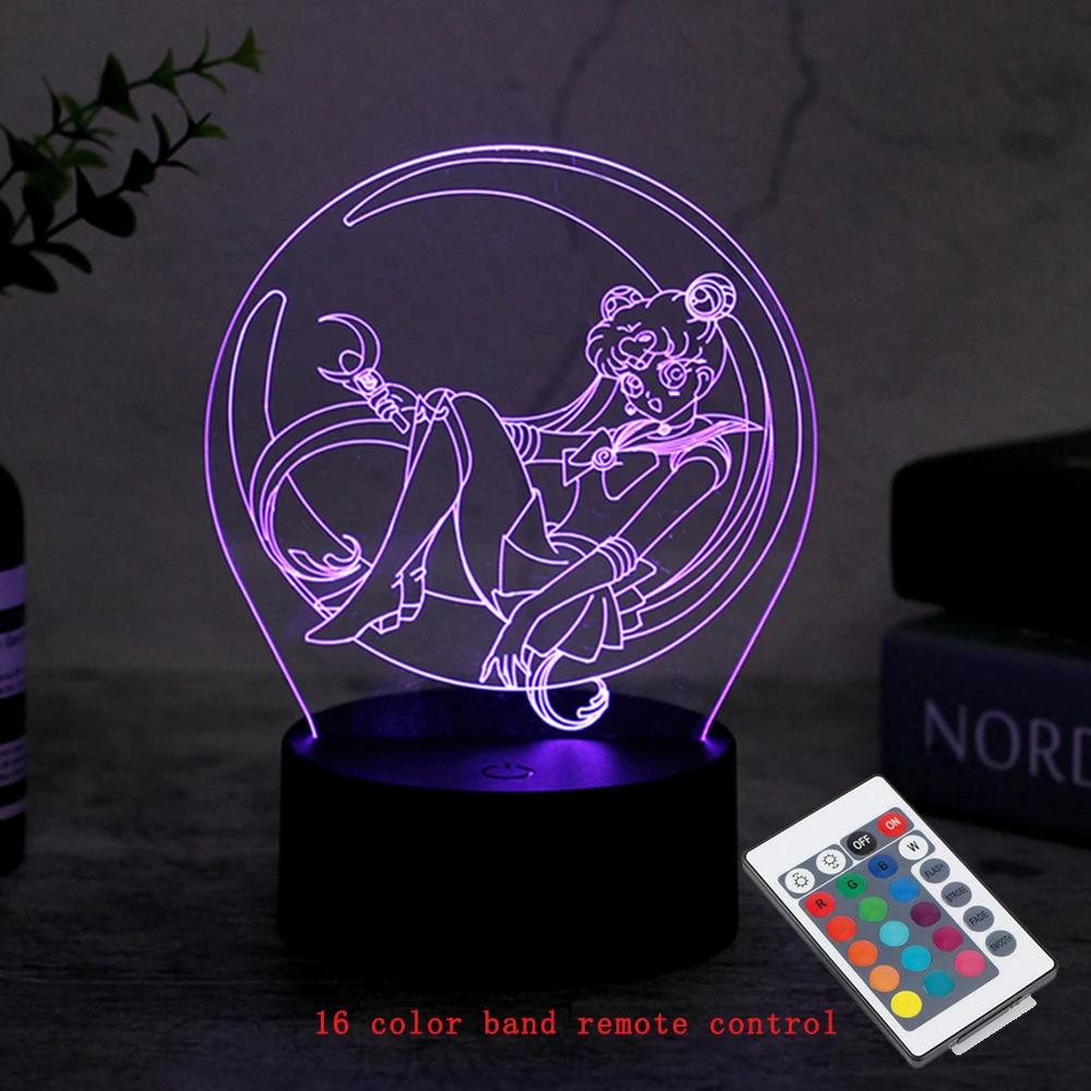 Персонаж мультфильма Цукино Усаги 3D светодиодный ночник с дистанционным управлением для домашней комнаты акриловая лампа настольная декорация для ребенка иллюзия новинка подарок