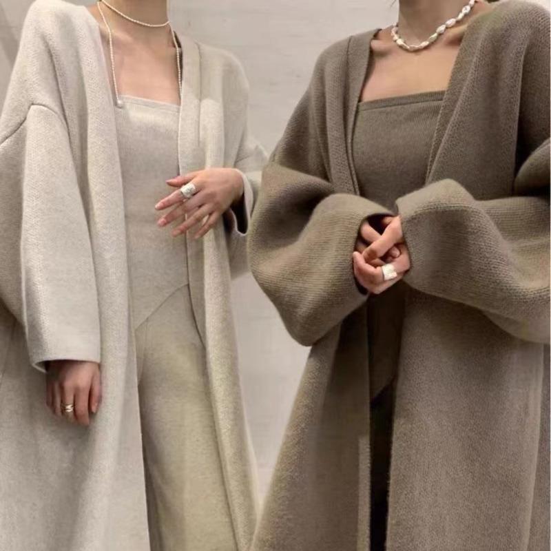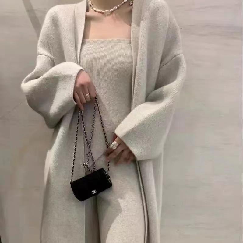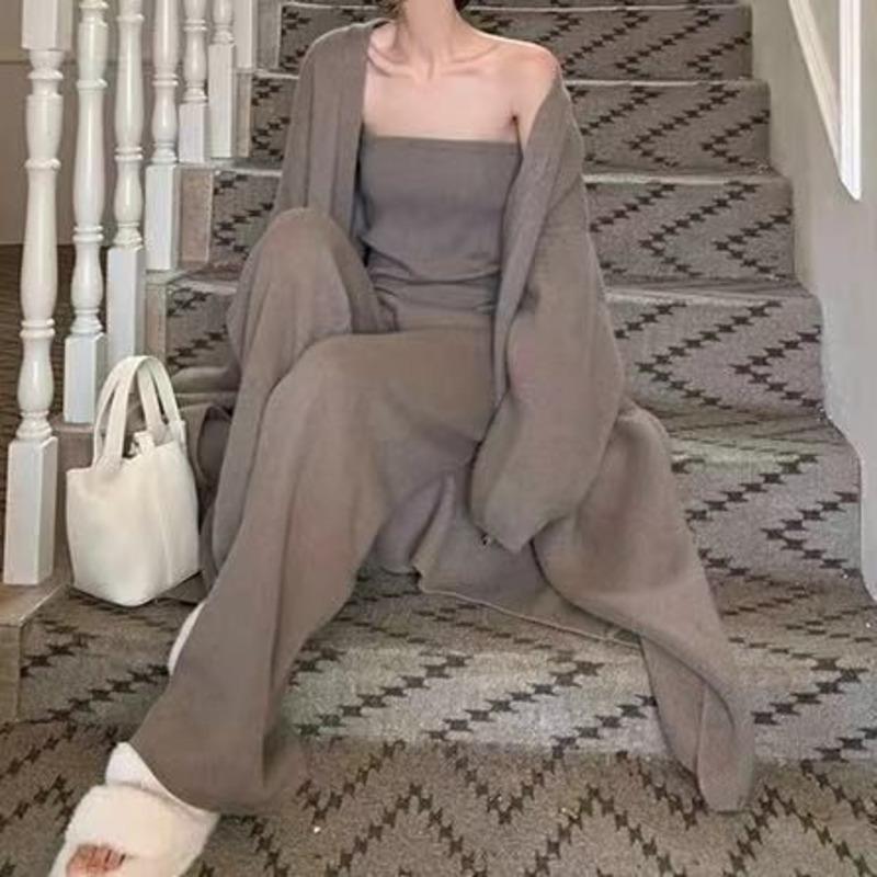 Элегантный свободный вязаный кардиган, пальто и трикотажные брюки-труба, комплект из 3 предметов