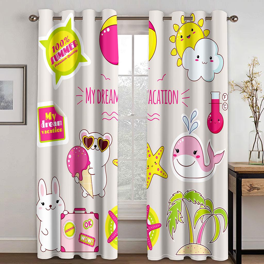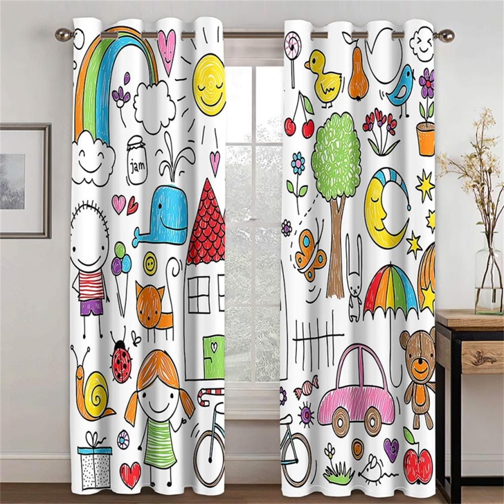 Детская картина 3D Шторы Солнце Радуга Луна Насекомые 2 Панели Гостиная Спальня Кухня Балкон Окно Декор Шторы