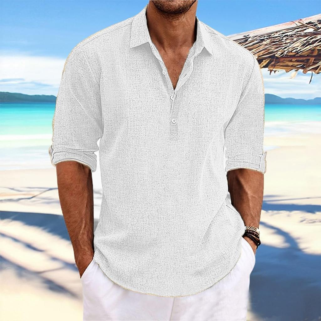 Мужская летняя однотонная рубашка большого размера с лацканами