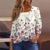 Жен. Футболка Футболка С принтом Пуговицы Рукав 3/4 Повседневные Выходные Мода Классический Классический Верх