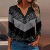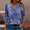 Женская футболка Футболка с принтом Рукав 3/4 Повседневные Выходные Мода Базовый V-образный вырез Обычный топ