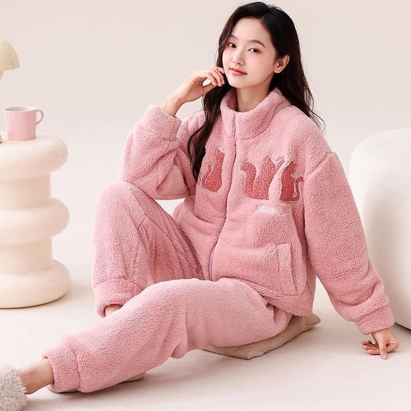 Женская пижама из кораллового флиса, зимний флисовый комплект с утолщенным воротником-стойкой, женский фланелевый теплый комплект домашней одежды — купить товар онлайн с бесплатной доставкой по всему миру!