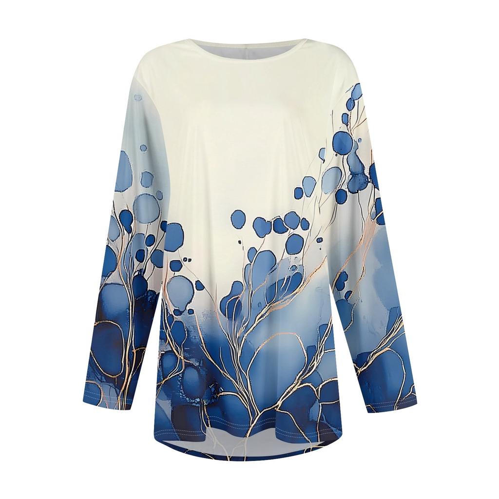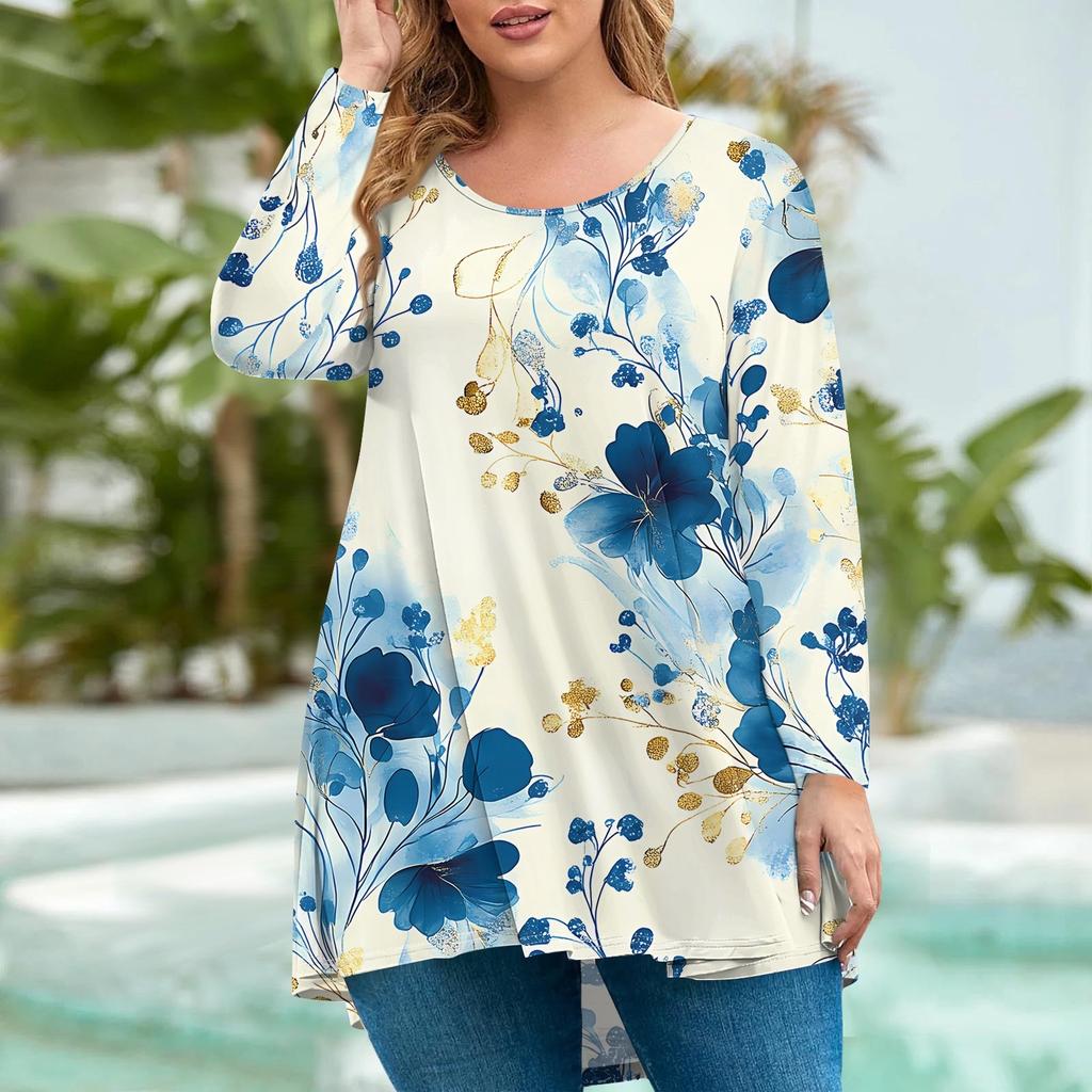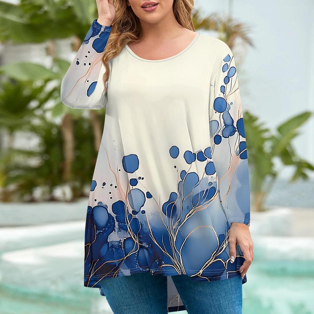 Женская мода большого размера с круглым вырезом и длинным рукавом, повседневный свободный пуловер с принтом