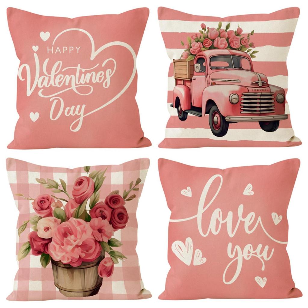 Чехол на подушку для автомобиля, на День святого Валентина, декоративная наволочка для дивана, льняная наволочка с принтом