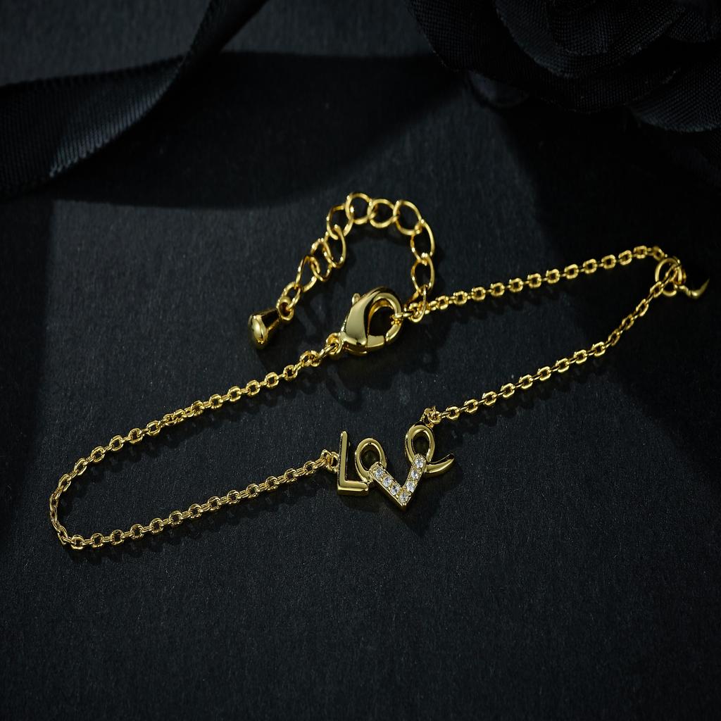 Браслеты Love из хрома с покрытием из 14-каратного золота, 20 см, браслет Love из меди и белого циркония для пары