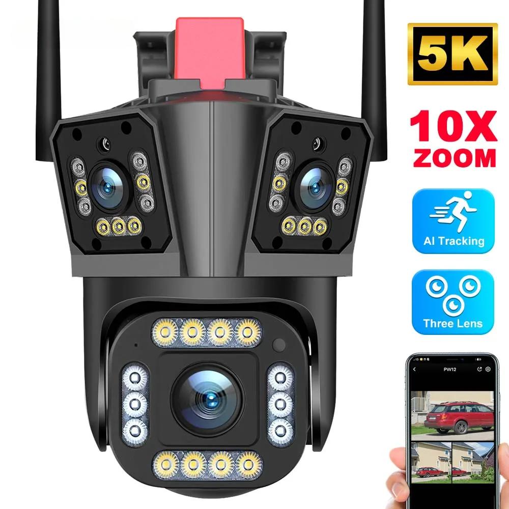 ### 5K 12MP WiFi IP-камера наружная 10-кратный зум три объектива камера безопасности