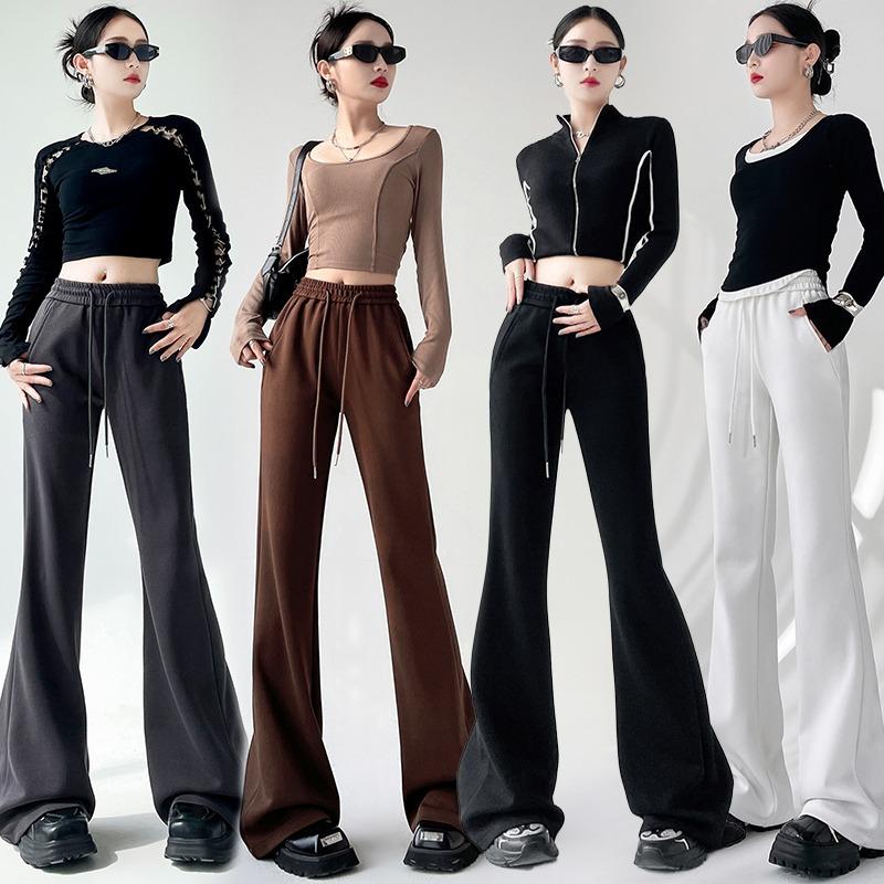 Элегантные женские повседневные брюки-клеш с широкими штанинами, новые модные свободные прямые брюки с высокой талией, женские однотонные простые офисные брюки со шнурком 2344 — купить товар онлайн с бесплатной доставкой по всему миру!