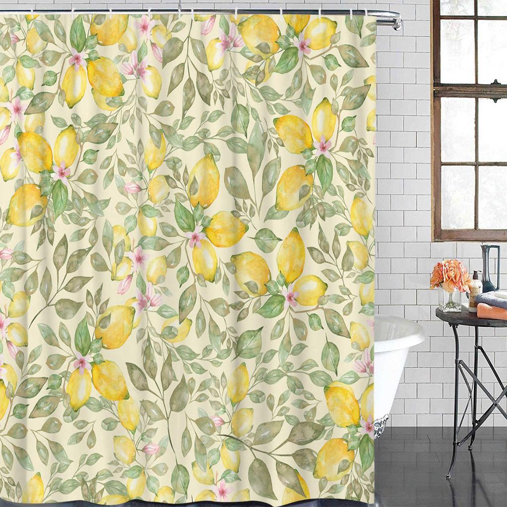 Водонепроницаемая занавеска для душа с крючком и принтом в виде лимона для ванной комнаты, аксессуары для ванной комнаты