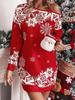 Женское осенне-зимнее платье с вырезом на одно плечо, свободное мини-платье с принтом снежинки, подходящее по цвету рождественскому стилю, с длинным рукавом длиной выше колена