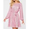 Женское платье с блестящими пайетками, круглым вырезом и длинными рукавами, на шнуровке, с узкой талией, сверкающее мягкое мини-платье длиной выше колена для клубной вечеринки