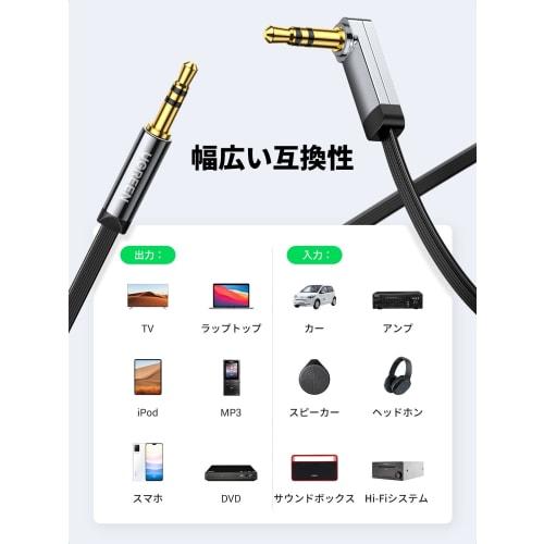 Аудиокабель UGREEN Aux-кабель, односторонний Г-образный стерео мини-штекер AUX, 3-контактный штекер-штекер с высоким качеством звука для наушников, позолоченный штекер High D