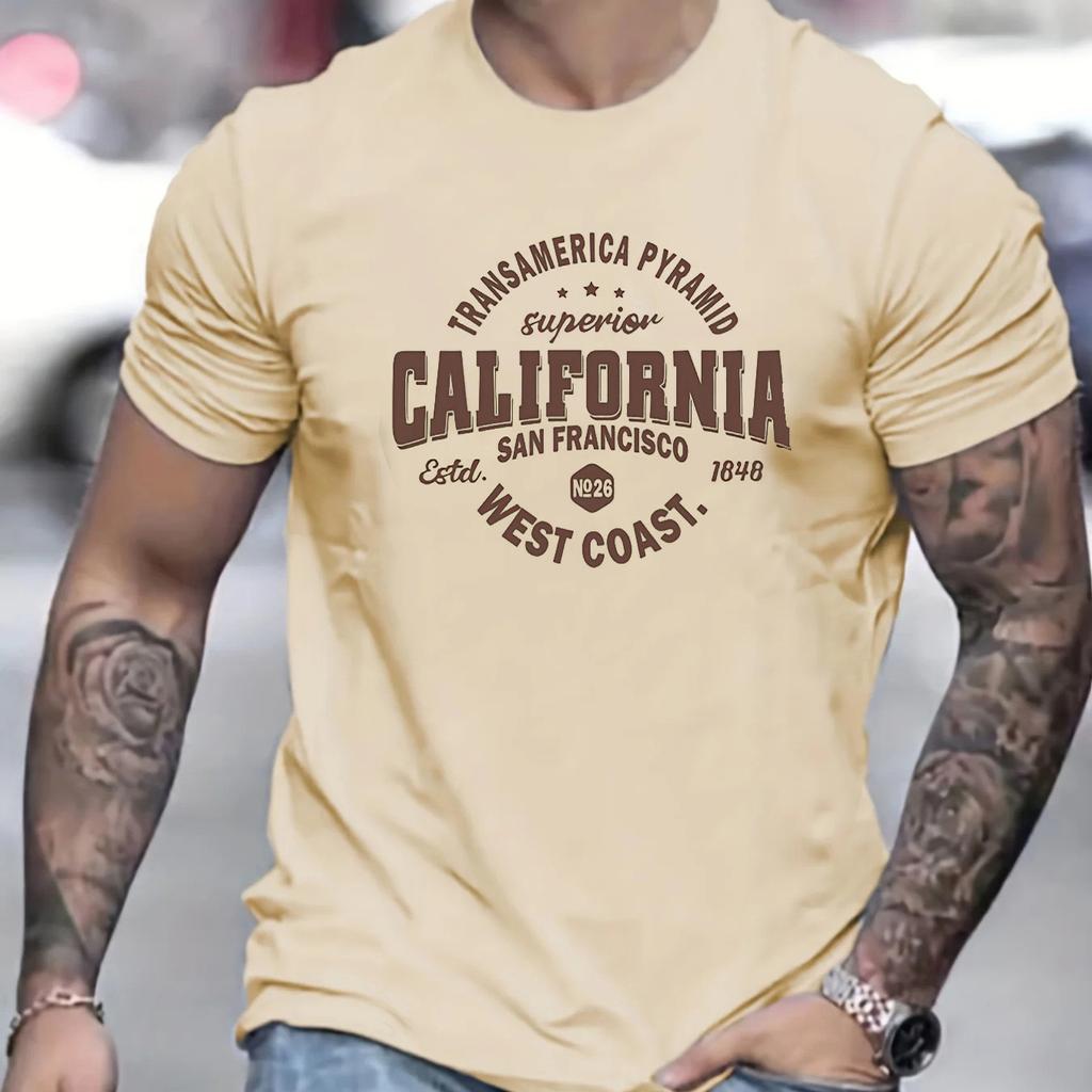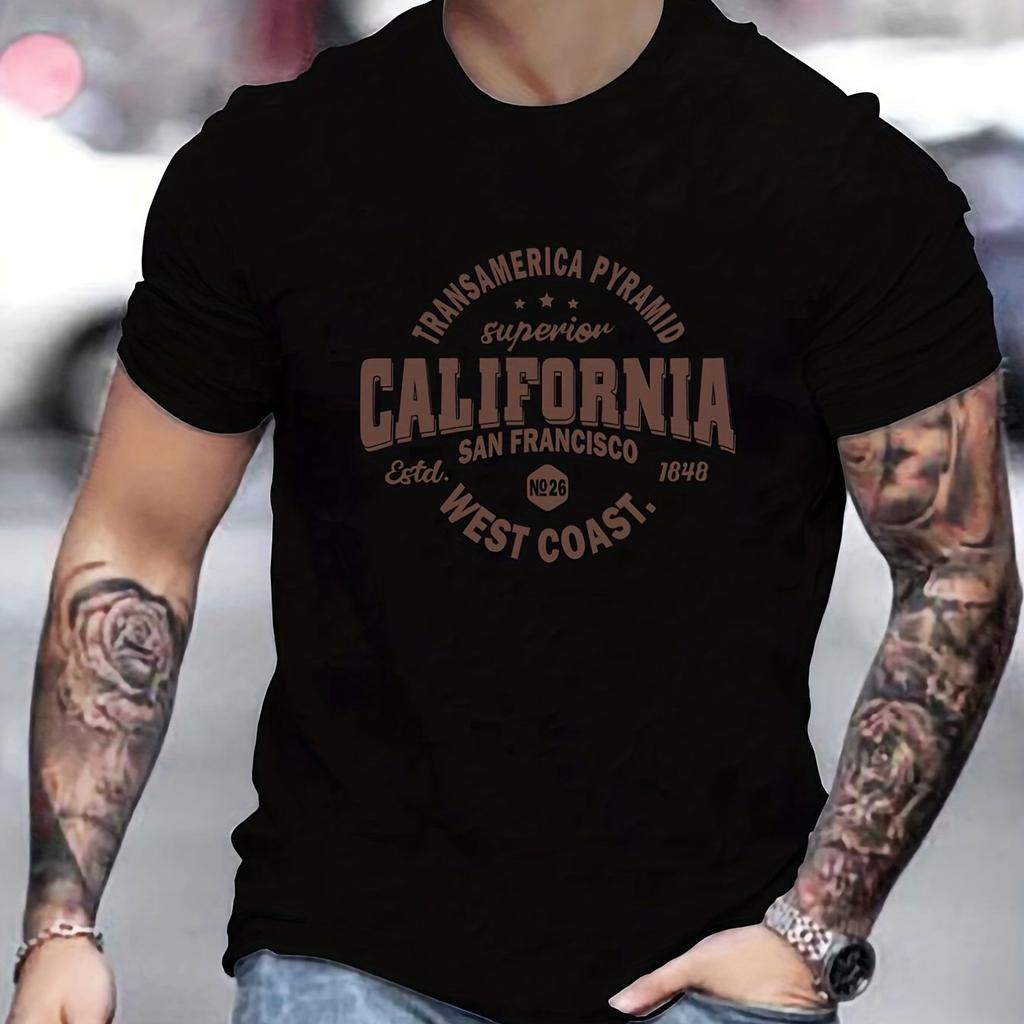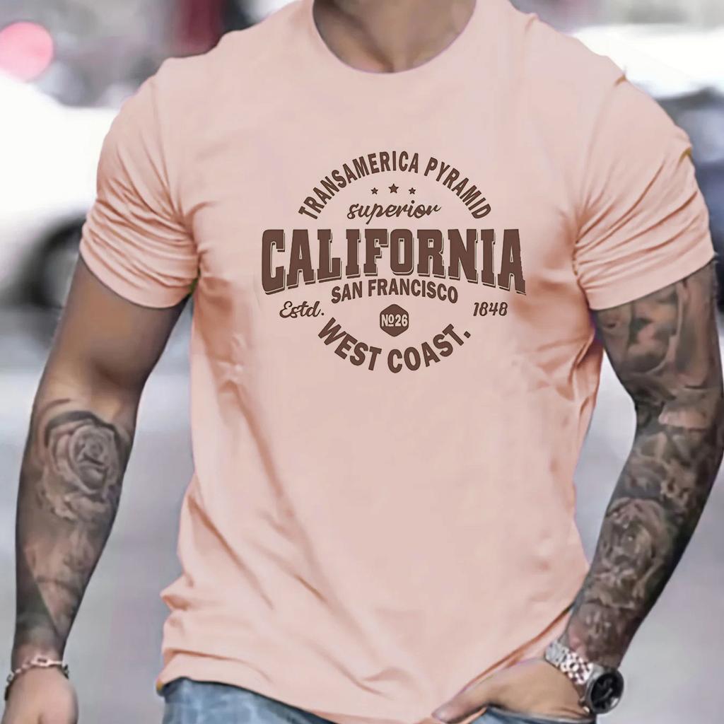 Мужская повседневная спортивная футболка свободного кроя из 100% хлопка с принтом California West Coast и круглым вырезом, короткими рукавами