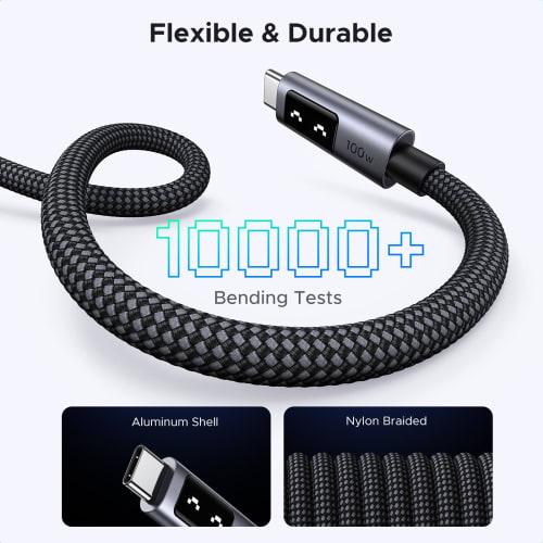 Кабель UGREEN Uno Type C 100 Вт/5 А PD3.0 сверхбыстрая зарядка E-maker Chip LED Smile Visualization нейлоновая оплетка высокая прочность USB C на USB C совместимый с