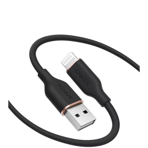 Кабель Lightning Anker (поток) 0,9 м Черный Не запутывающийся кабель из силикона Совместим с iPhone 14 / 13 / 12, iPad Air / mini / Pro, iPod nano, AirP