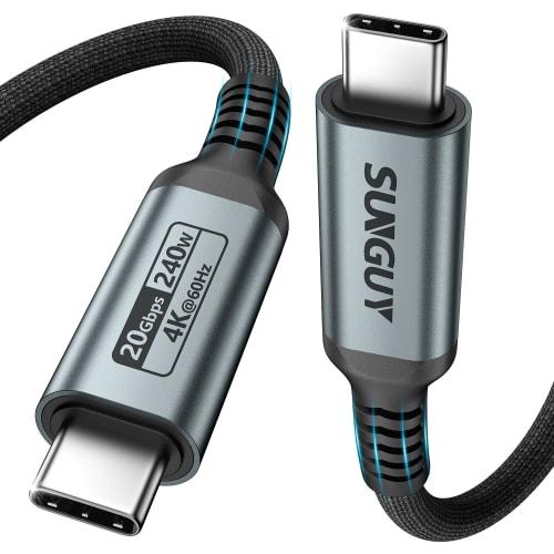 Кабель SUNGUY USB C-C мощностью 240 Вт, 3 м, сверхбыстрый кабель для зарядки типа C, высокая скорость 20 Гбит/с ??Передача данных 4K@60 Гц Видеовыход Кабель Type-C Heavy Duty Dis