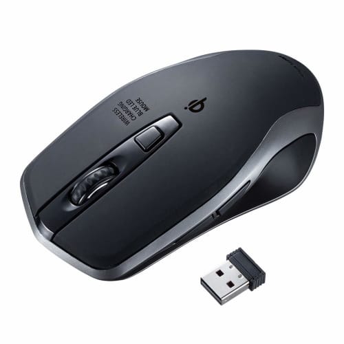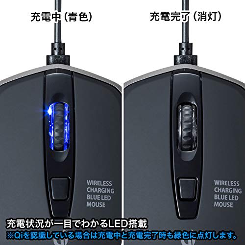 SANWA SUPPLY Беспроводная зарядная мышь, совместимая с Qi, синий светодиод, 5 кнопок, большая, черная, MA-WBL157BK