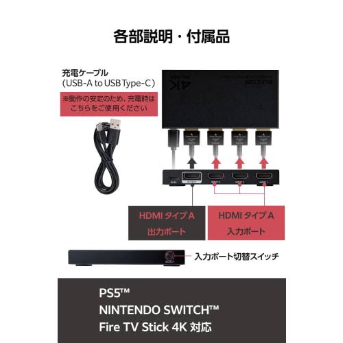 Elecom Коммутатор HDMI (селектор) 3 входа 1 выход 4K (4096 х 2160) 60 Гц Выбираемая функция автоматического/ручного переключения [Подтверждена работа с PS4/PS5]