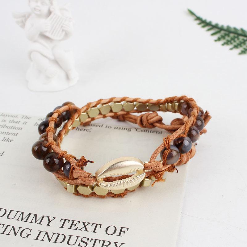 Европейский и американский ретро-плетеный браслет из коровьей кожи - западный модный дизайн для пары с бусинами
