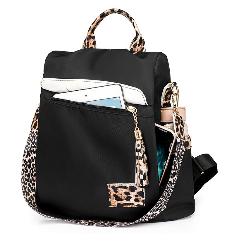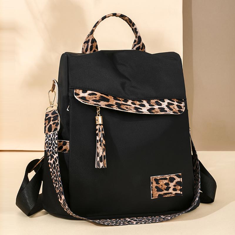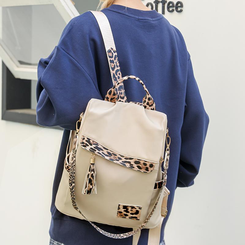Нейлоновый леопардовый женский рюкзак с защитой от кражи, кисточкой, большой емкости, контрастный цветной дорожный рюкзак