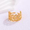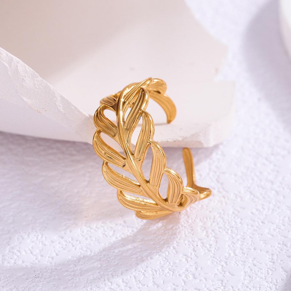 Полое кольцо из нержавеющей стали в европейском и американском стиле в форме листа - ретро-дизайн с титановой сталью