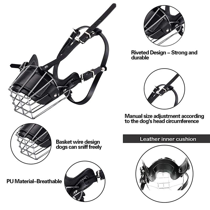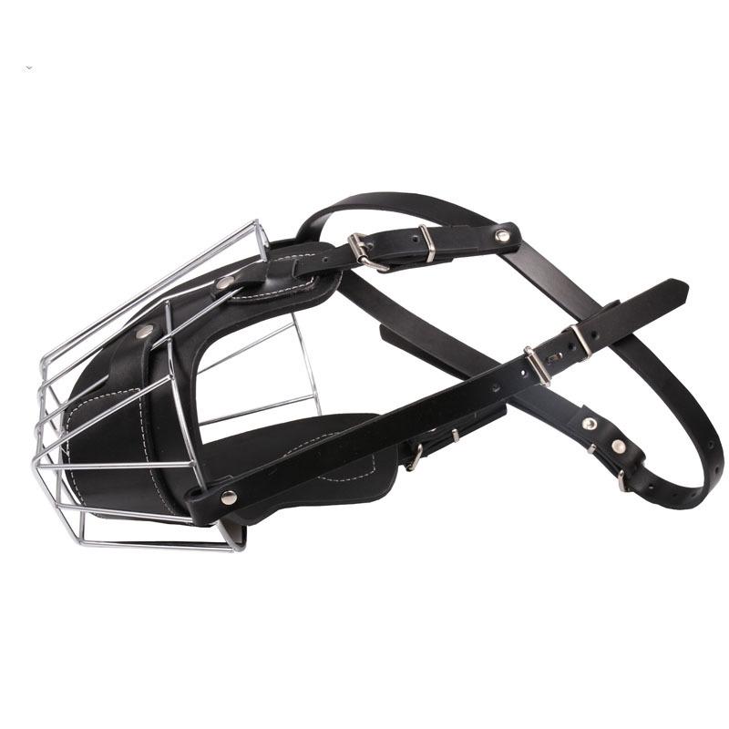 Намордник для собак с металлической корзиной для лица, дышащий, регулируемый, кожаный поводок