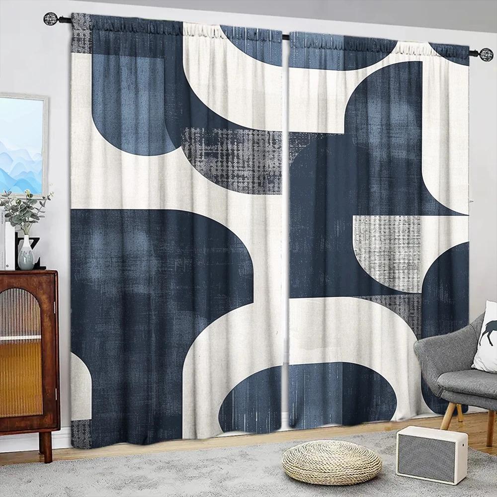 2 шт. Сине-белая штора с художественным принтом для домашнего декора - Кулиска для штанги, оконное оформление для спальни, офиса, кухни, гостиной