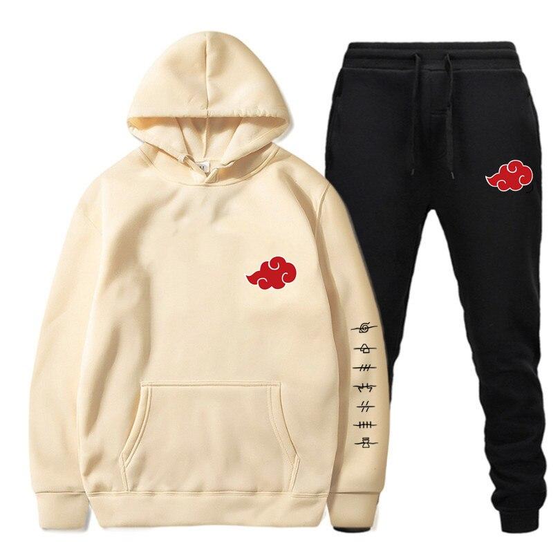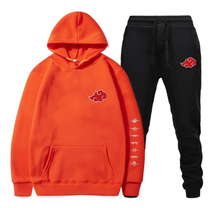 Комплект из 2 предметов, толстовки с принтом облаков Акацуки + брюки, спортивный костюм для мужчин и женщин, уличная одежда, пуловер Sudaderas