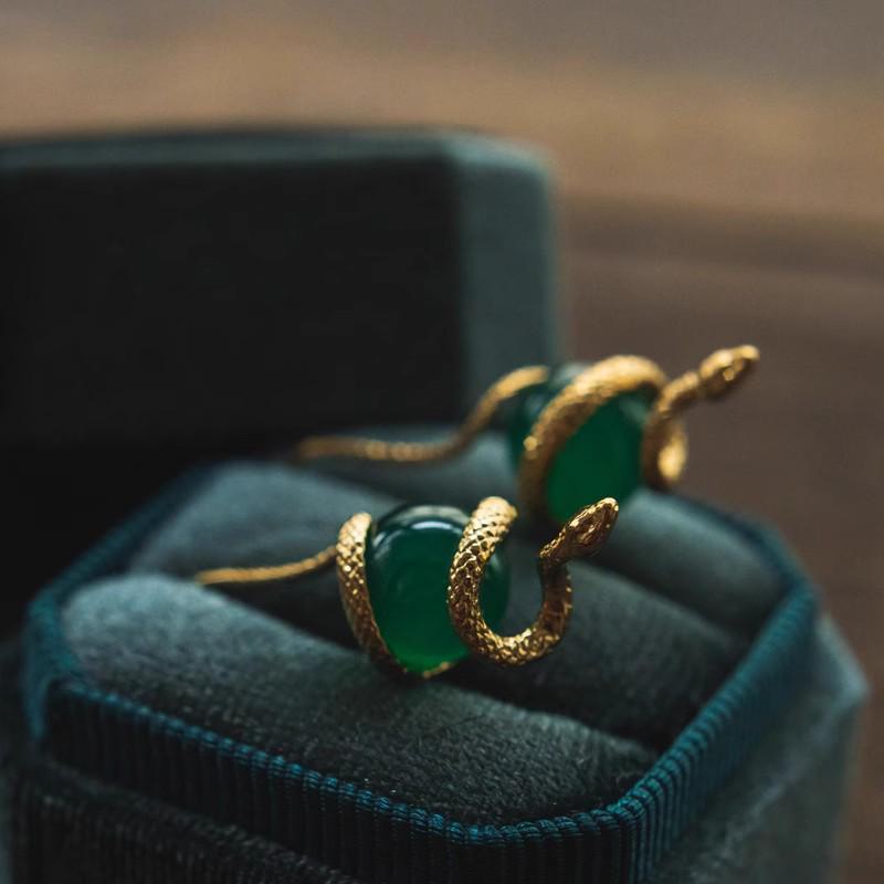 Стильные зеленые серьги в виде змеи для женщин — дизайн крючков, вдохновленный древними фараонами, идеально подходит для года зодиака, мода высокого класса на осень/зиму.