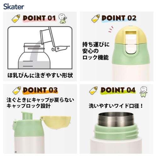 Skater Insulated Stainless Steel Bottle for Milk Formula, Convenient Water Bottle for Making Milk, 500ml, Lightweight Type, Easy to Carry, Disney Pooh
