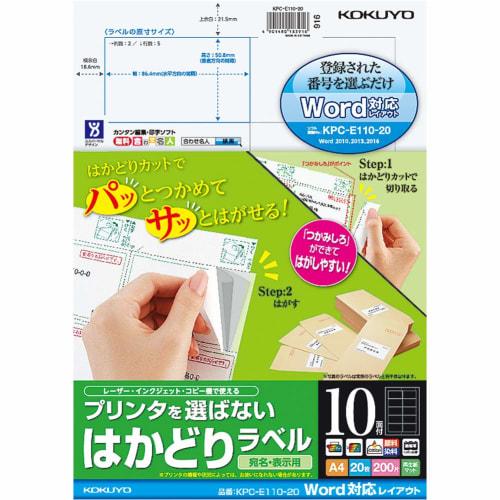 KOKUYO printer compatible label stickers 10 sides 20 sheets KPC-E110-20N